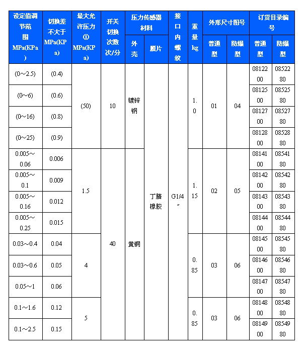 500/7D防爆壓力開關(guān)采用膜片式傳感器,可用于空氣等中性氣體和水、液壓油、潤滑油、輕燃油等液體介質(zhì)。500/7D防爆壓力開關(guān)的設(shè)定值可調(diào),調(diào)節(jié)范圍0~2.5MPa。