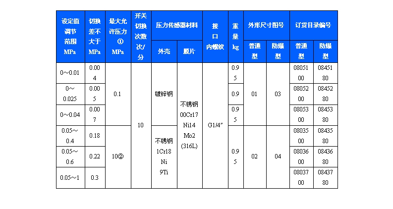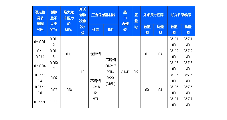 501/7D防爆壓力控制器采用膜片式的傳感器,部分規(guī)格傳感器外殼材料是不銹鋼,可用于腐蝕性介質(zhì),也可用于空氣、氣體、水蒸汽等中性氣體和油等液體介質(zhì)??刂破鞯脑O(shè)定值可調(diào),調(diào)節(jié)范圍0~1MPa。