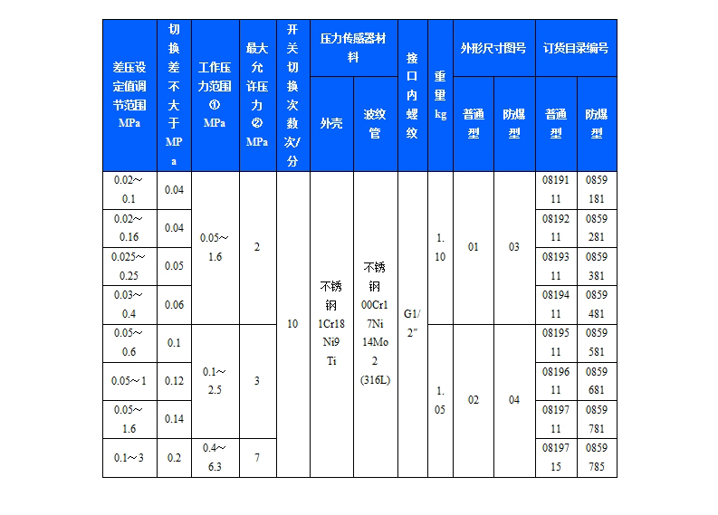 530/7DD防爆差壓控制器采用波紋管式的傳感器,可用于腐蝕性的氣體和液體介質(zhì)。530/7DD防爆差壓控制器的設(shè)定值可調(diào),調(diào)節(jié)范圍0.02~3MPa,其工作壓力范圍0.05~6.3MPa。